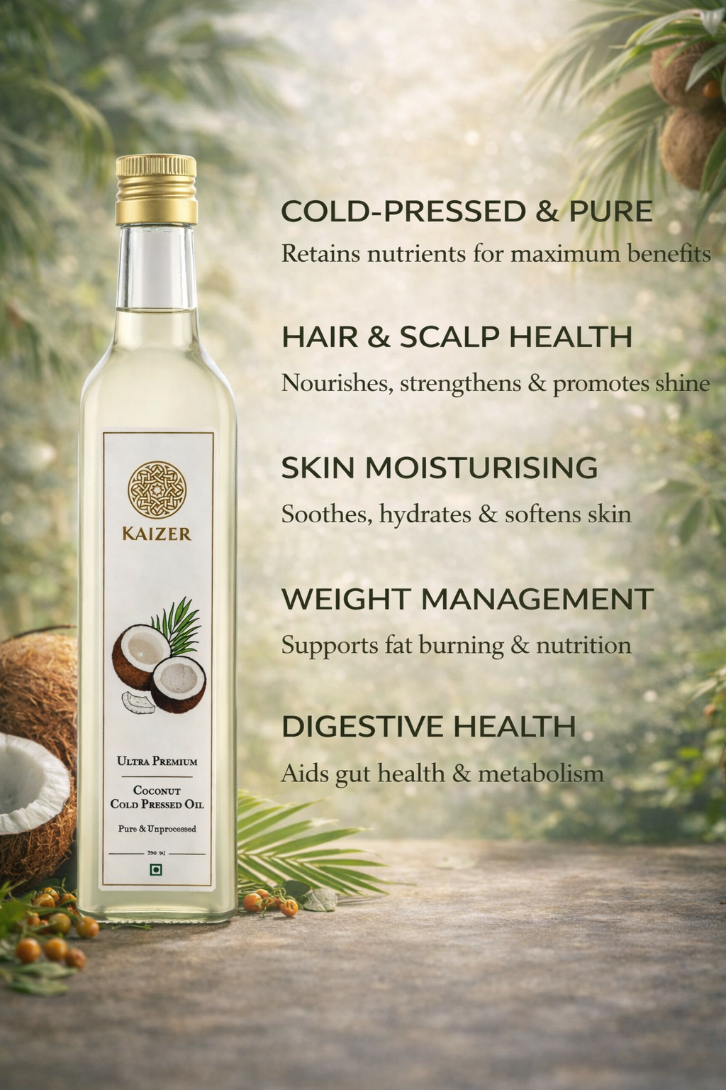 As a beauty essential, cold-pressed coconut oil for hair strengthens roots, tames frizz, and restores shine.. On skin, it hydrates deeply and leaves a soft, radiant glow, showcasing the timeless coconut oil benefits for skin.